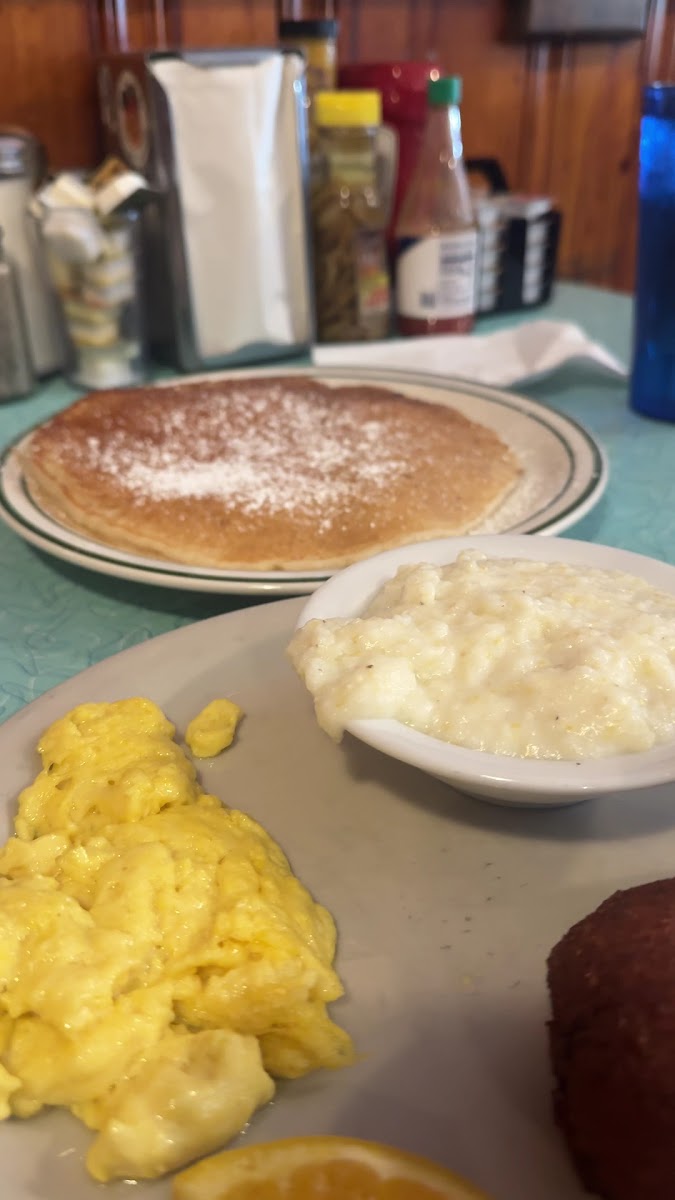 This place is a gem! My dad told me this place has some good food and man was he 10/10 for this recommendation. If you are looking to get some “home cooked” meals then this is your spot. The food is too good! I usually order the chicken tender meal that comes with grits, eggs, and a huge crispy pancake. The portions are enough to share! The chicken is fried crispy! The grits are standard. Not made it though cause you can just season to your liking. My boyfriend enjoys their bacon too. It’s hard to choose another menu item because the OG is so good. The staff is friendly but if it is busy they will rush you will so the next people can sit down.