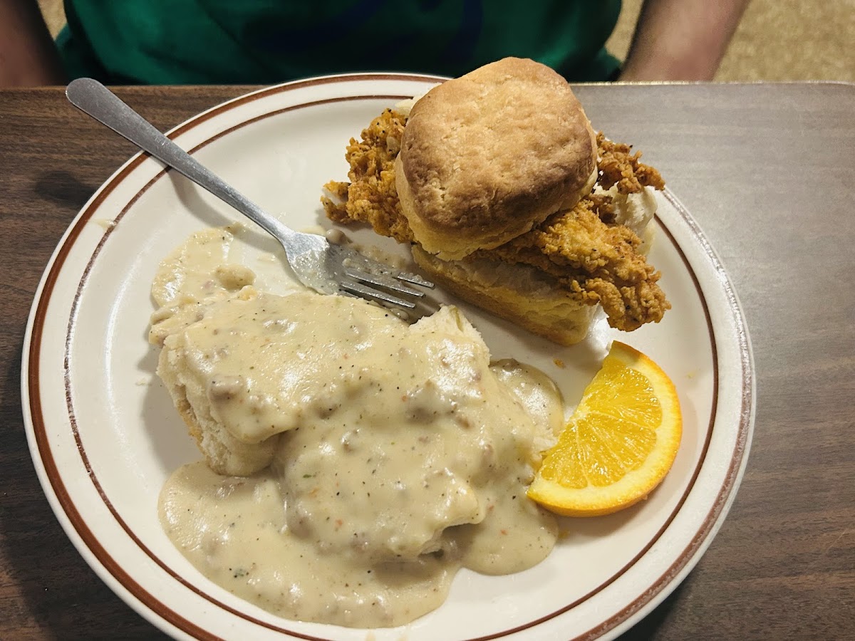 Out son who lives in the area had been wanting us to eat here and enjoy real Southern Comfort food. The restaurant is a quaint restaurant on Memorial Drive in Atlanta. Once arrived, we were immediately seated. There was a bar to sit at as well as table seating. The waitress was as sweet as can be and very helpful. Nothing like Southern Hospitality. The restaurant has the feeling of a simpler time. The menu is breakfast/ lunch. I chose the fried chicken on a biscuit with sausage gravy (Comfy Chicken Biscuit). It was so good. The coffee was almost addicting. Portions are huge. I did bring half home. Love to return next time I am in Atlanta