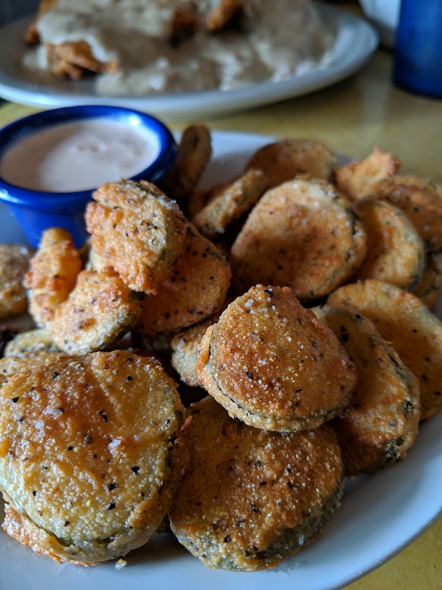 A simply delightful place with not fancy food, but great food. With really interesting decor and a very diverse clientele with a really cool coffee shop and art on the wall for sale. The fried green tomatoes were some of the best fried green tomatoes I’ve ever had.