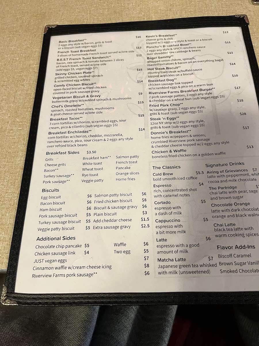 The breakfast menu features traditional favorites like fluffy waffles, French toast, and biscuits served alongside eggs prepared any style. For something a little different, breakfast enchiladas or breakfast tacos offer a unique twist without straying from that comforting feeling. At lunchtime, the menu includes Southern staples like fried green tomatoes, collard greens, and chicken fried steak, as well as satisfying sandwiches and sides meant to pair naturally with the friendly, laid-back vibe of the restaurant.