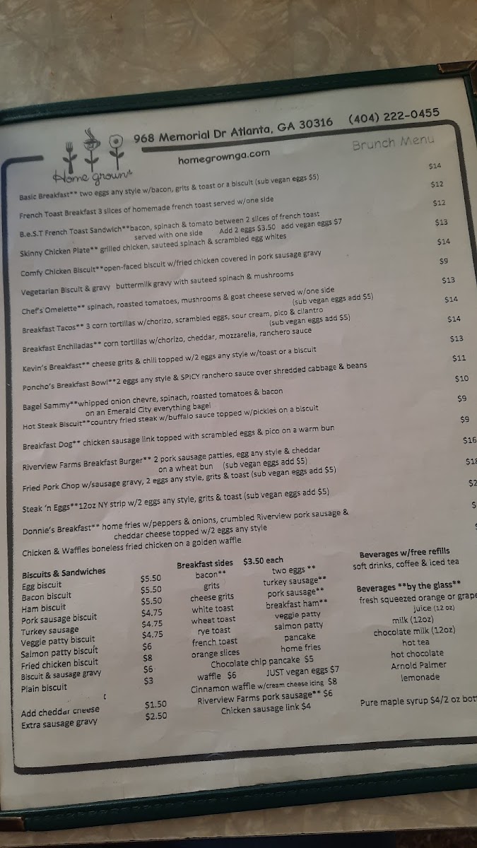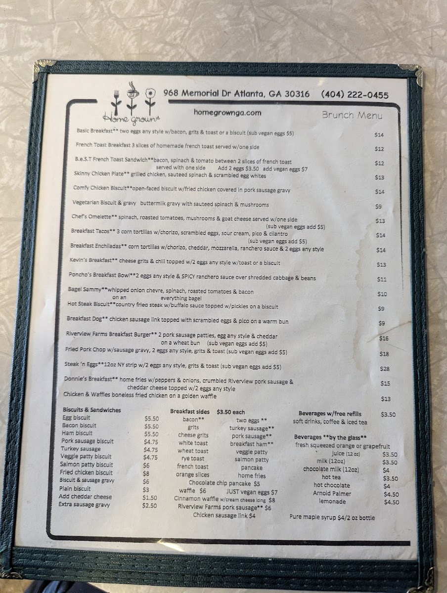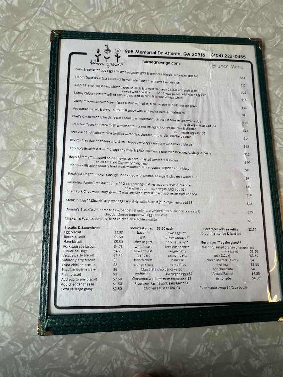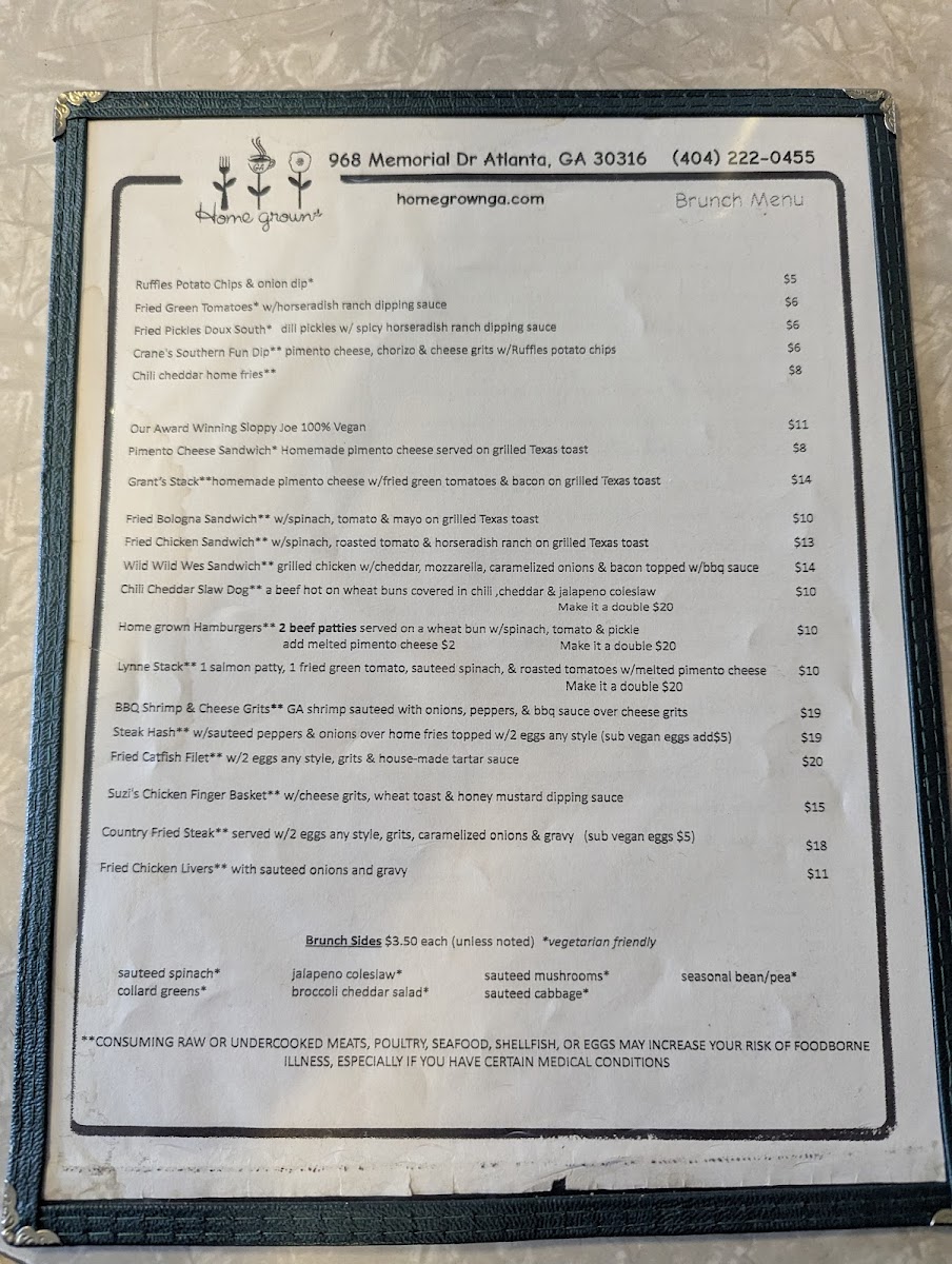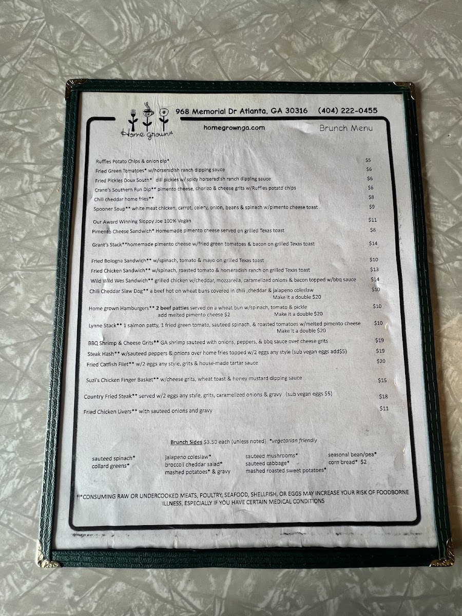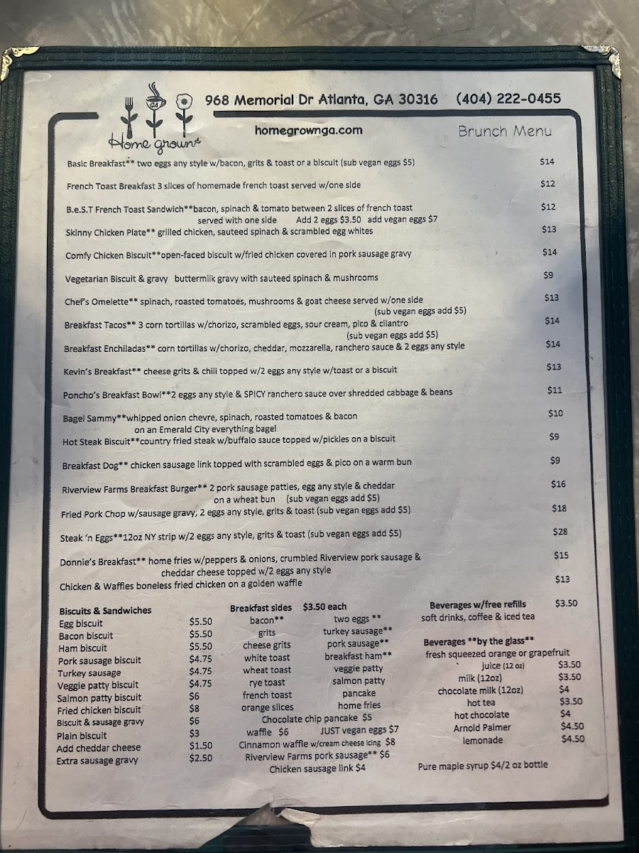 Home Grown GA Restaurant offers a straightforward and inviting menu rooted in Southern comfort and classic American breakfasts. The selections feel right at home in the cozy, well-loved atmosphere of this neighborhood spot, where familiar flavors and hearty portions invite guests to relax and enjoy a meal at any time of day.